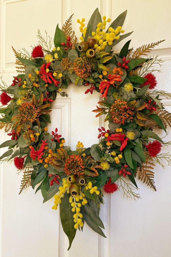 Each wreath is lovingly hand made, we start with a natural twig base and then weave in each Poppy, Waratah, Wattle and Eucalyptus leaf- over 120 individual floral elements in each wreath!